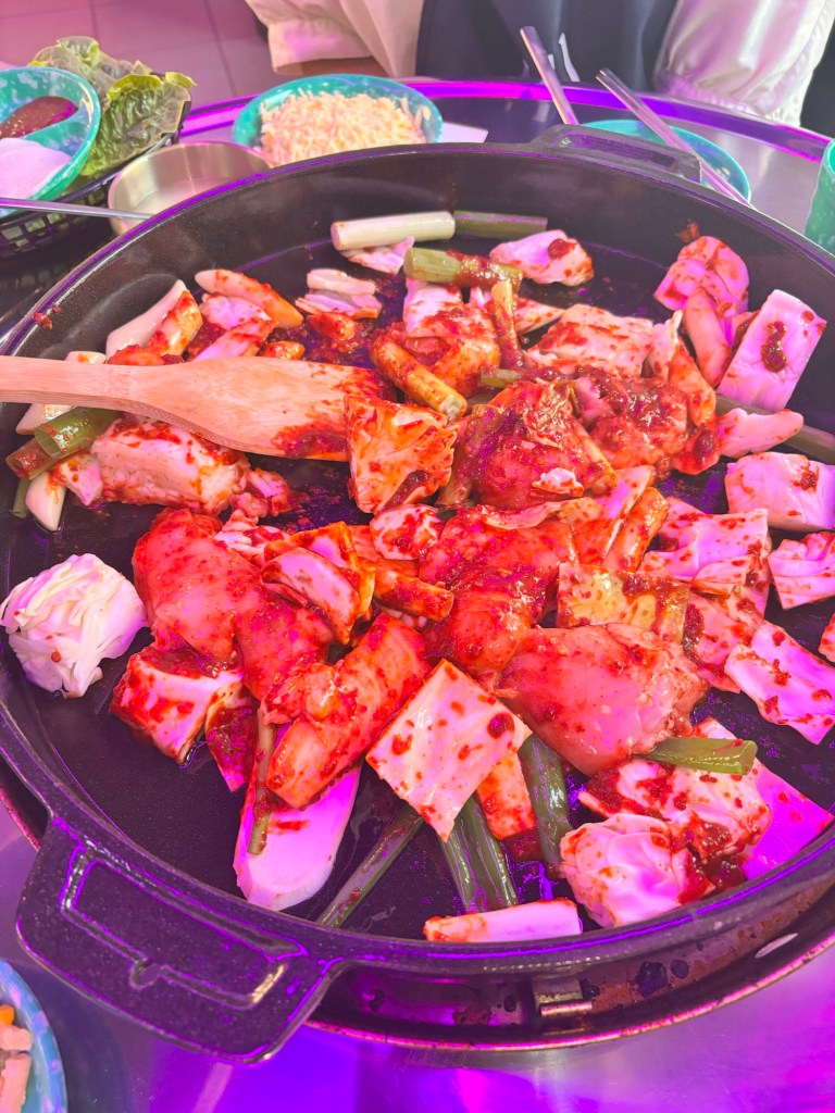 88 Pocha isn’t just about food- its a full-blown experience. From interactive cooking (or, in my case, supervised cooking) to surprised birthday theatrics and Soju-fueled celebrations, its a place to gather, eat too much, and roll home with a box of leftovers. Highly recommend- just don’t forget to cut the Dakgalbi.